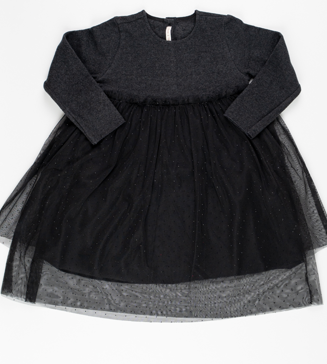 Abito in caldo cotone grigio fumo con gonna in tulle