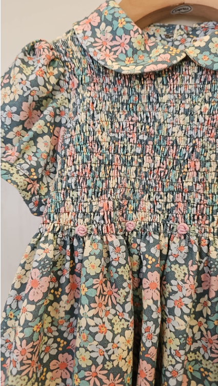Abito foderato con rose ricamate sul petto  100% cotone di flanella