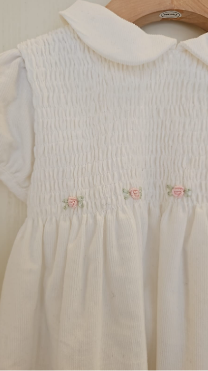Abito a manica corta in velluto ricamato con roselline rosa 100% cotone