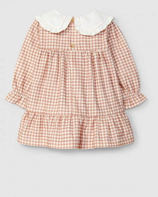 Abito in velluto a coste leggero e 100% cotone malleabile con stampa a quadri vichy. Colletto in morbido cotone con cuciture a contrasto e dettaglio arricciato. Chiusura con bottoni Laranjinha sul...