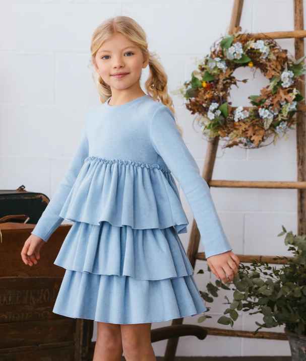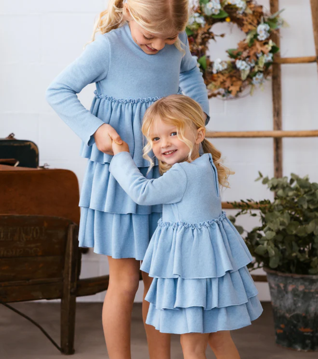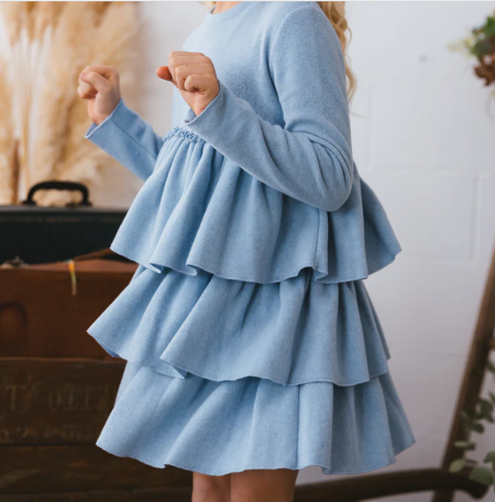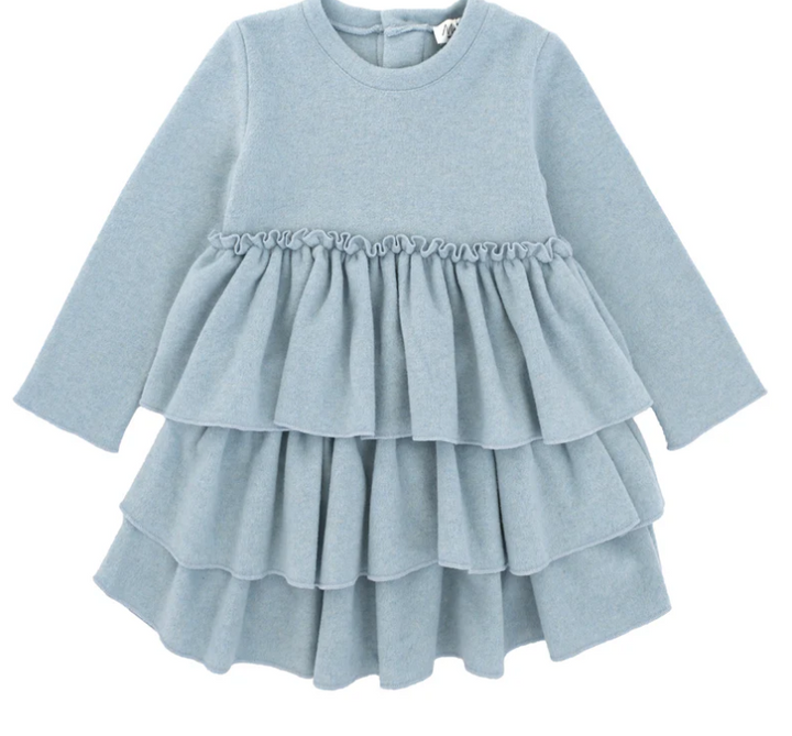 Abito in punto milano, Girocollo, Maniche lunghe, Tagliato in vita con dettaglio arricciatura e gonna a balze, Chiusura sul retro con bottoncino in madreperla 50% COTONE 50% POLIESTERE - Contiene parti...