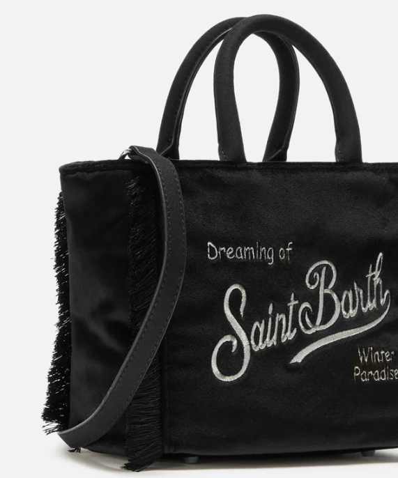 La Vanity Mini Velvet in velluto nero è sofisticata e intramontabile, perfetta per la sera o il giorno.Borsa a mano Tracolla removibile e regolabileTasca internaLogo ricamato, dettaglio frangeDimensioni: 20 x 19...