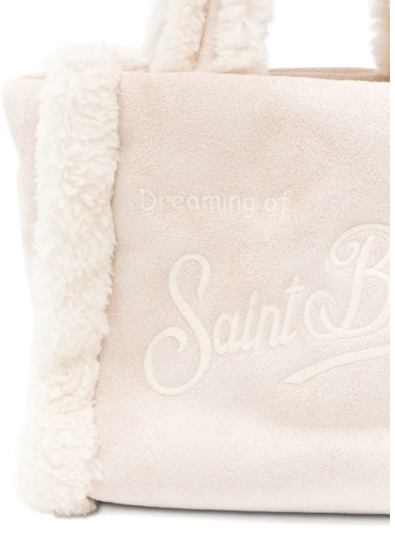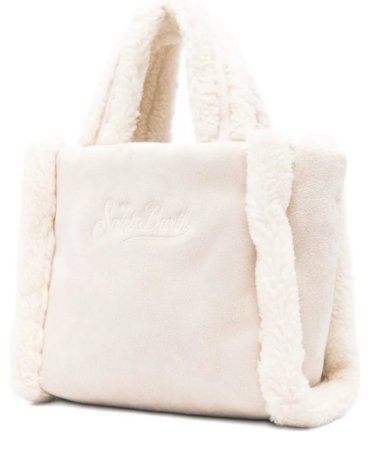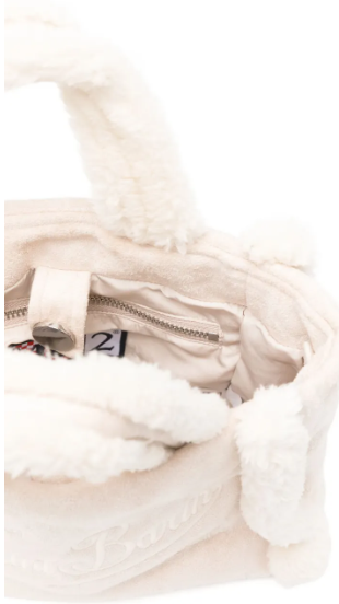 beige tessuto con effetto shearling ricamo con logo doppio manico tracolla rimovibile e regolabile chiusura con bottoni automatici