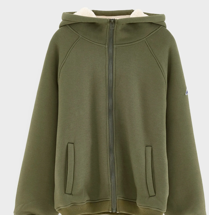 Felpa con cappuccio e cerniera frontale interno con pelliccia