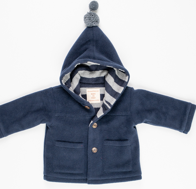 cappotto in cotone acrilico poliestere viscosa e altre fibre Cappotto con interno in caldo cotone. Cappuccio con pom pom. 2 tasche a toppa davanti, interno in caldo cotone colore riga blu...