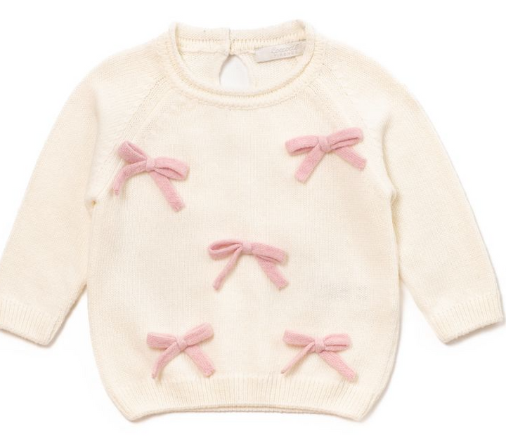 Maglione in lana con fiocchi rosa 40% lana merino 30% viscosa 20% poliammide reciclato 10% cashemere