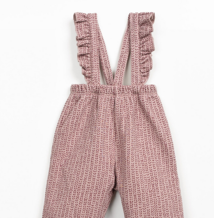 Questa tuta è realizzata in pile con un mix di cotone biologico e cotone, nel colore rosa chiaro. È un modello con spalline, ha un'apertura posteriore con bottone in cocco e...