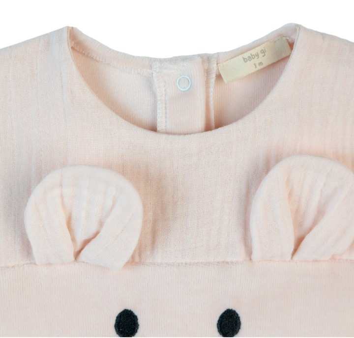 Tutina in ciniglia rosa con orsetto