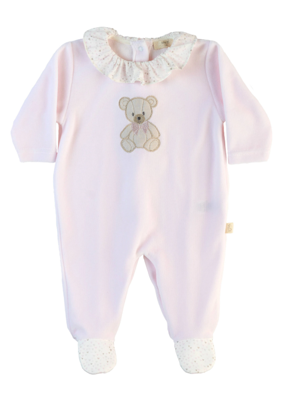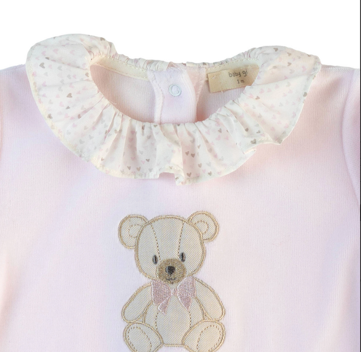 Tutina in Ciniglia rosa con orso e rouche a fiorellini