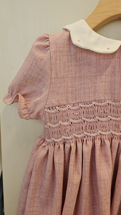 Vestito in Flanella con Punto Smock Rosa Autunno-Inverno