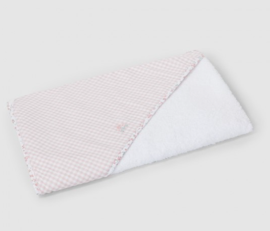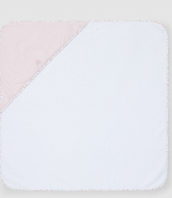 Asciugamano da bagno in spugna con cappuccio in tessuto stampato e nastro a contrasto tutt'intorno. Delicato dettaglio ricamato. 90% COTONE10% POLIESTERE
