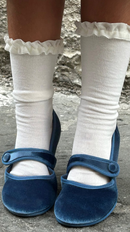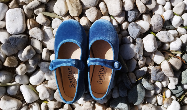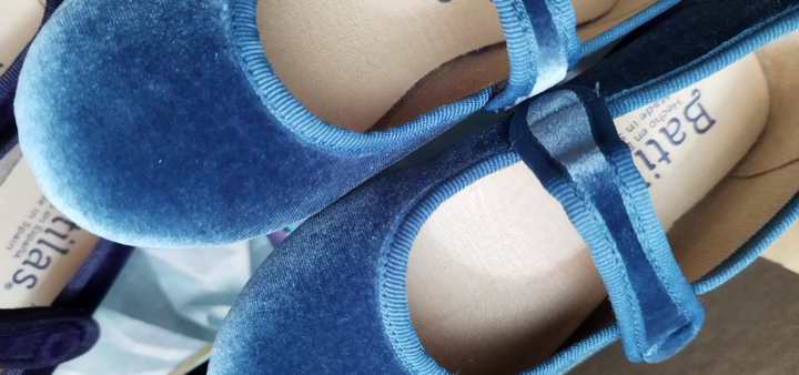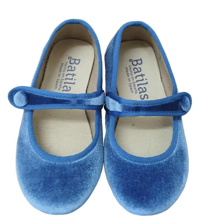 Ballerina petrolio in velluto con bottoncino