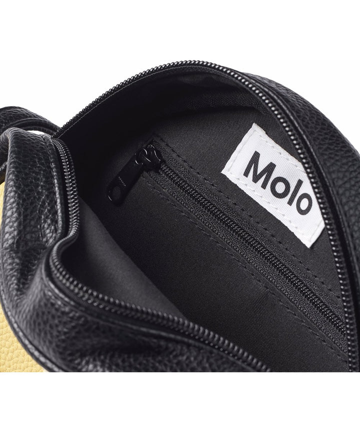 Borsa rotonda con una faccina gialla sorridente su un lato e una faccina viola acida sull'altro. La borsa misura 17 cm sia in altezza che in larghezza e 5 cm in...