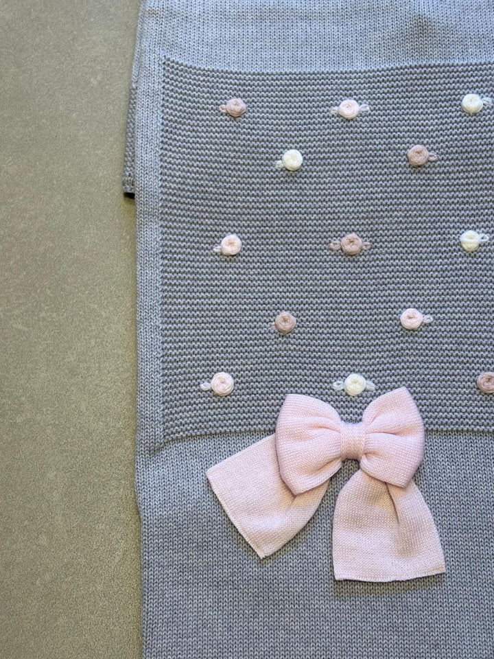 Coperta in lana grigia con roselline ricamate