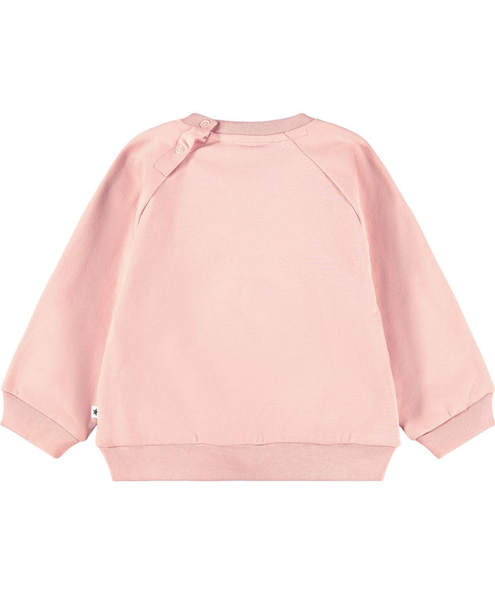 Felpa rosa per i più piccoli, realizzata in morbido cotone biologico con un faccino sorridente ricamato sul davanti. La felpa ha maniche raglan, bordi a costine in vita e sulle maniche...