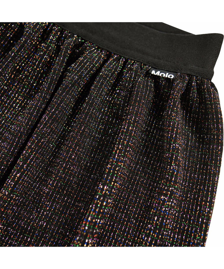 Gonna plissettata in glitter multicolore. La gonna ha un elastico in vita, quindi può essere indossata alta o sui fianchi. La gonna è lunga fino a metà stinco e cade magnificamente....