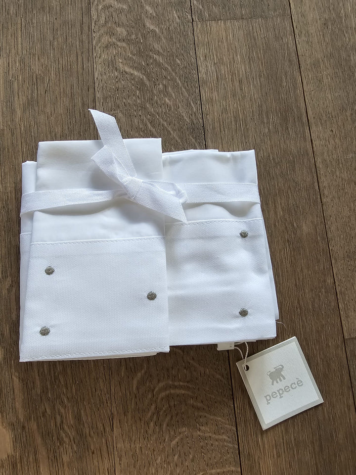 Lenzuola culla- carrozzina con ricamo pois biscotto