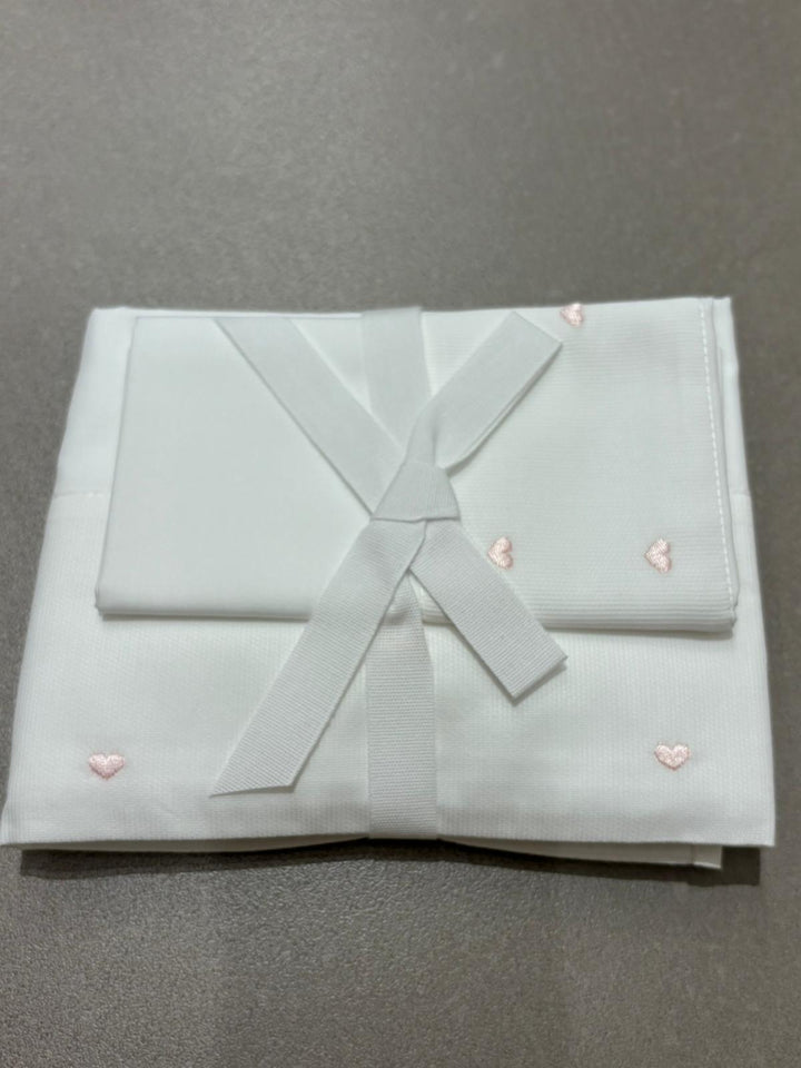 Lenzuolo culla- carrozzina con ricamo cuore rosa