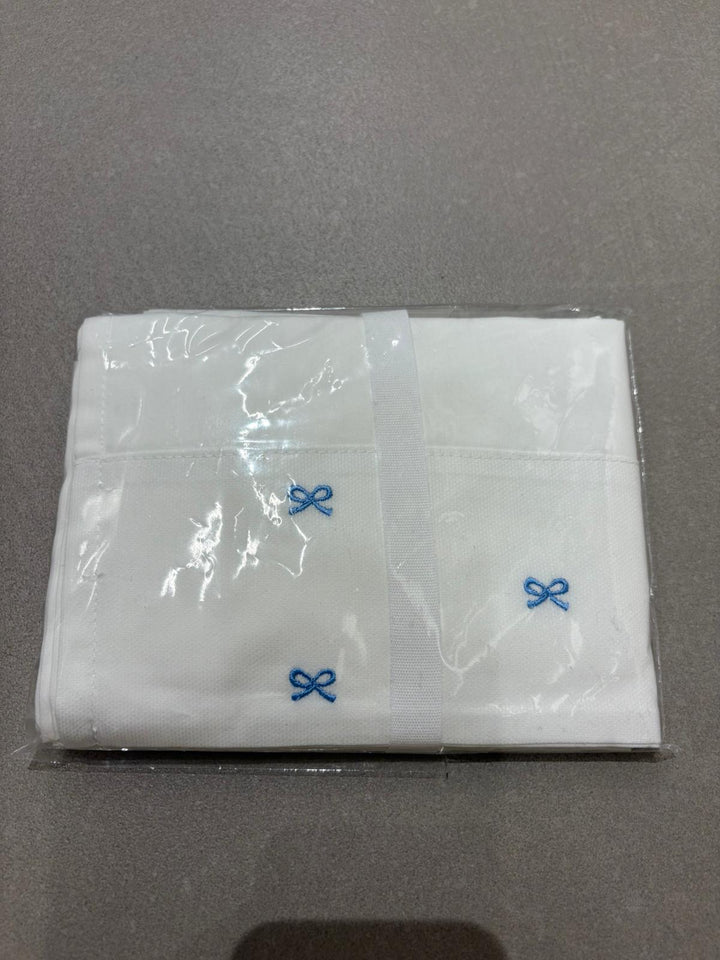 Lenzuolo culla- carrozzina con ricamo fiocco azzurro