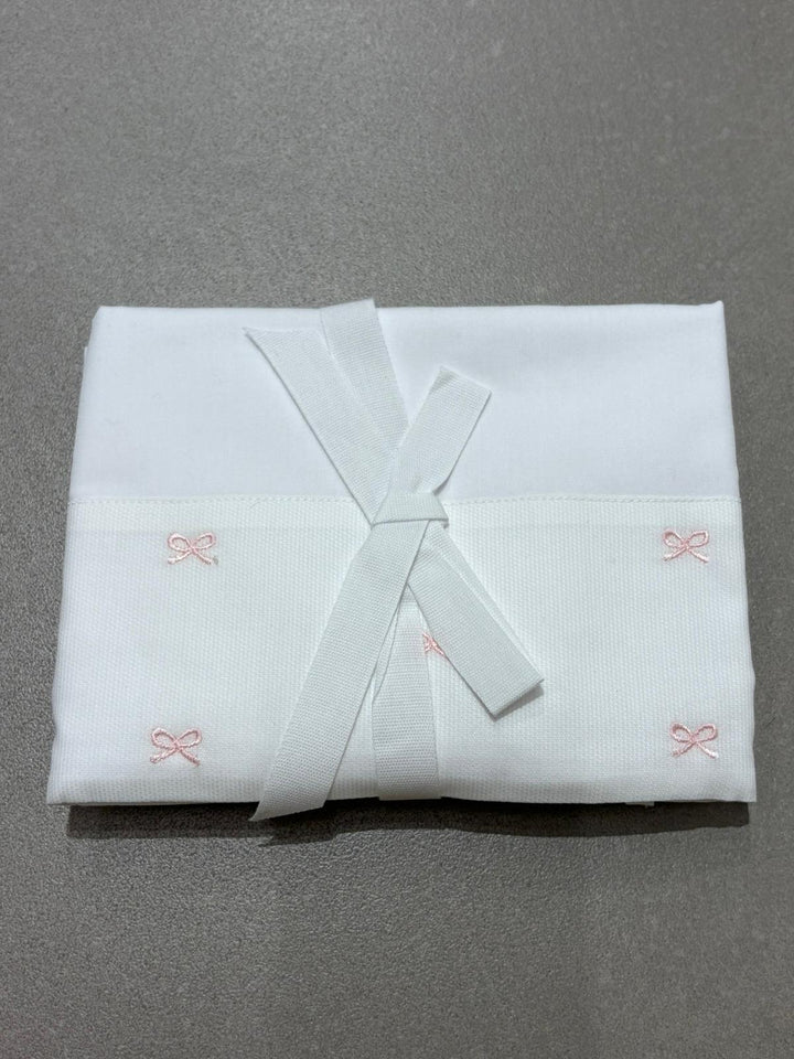 Lenzuolo culla- carrozzina con ricamo fiocco rosa