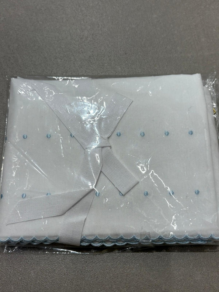 Lenzuolo culla - carrozzina con ricamo pois celeste