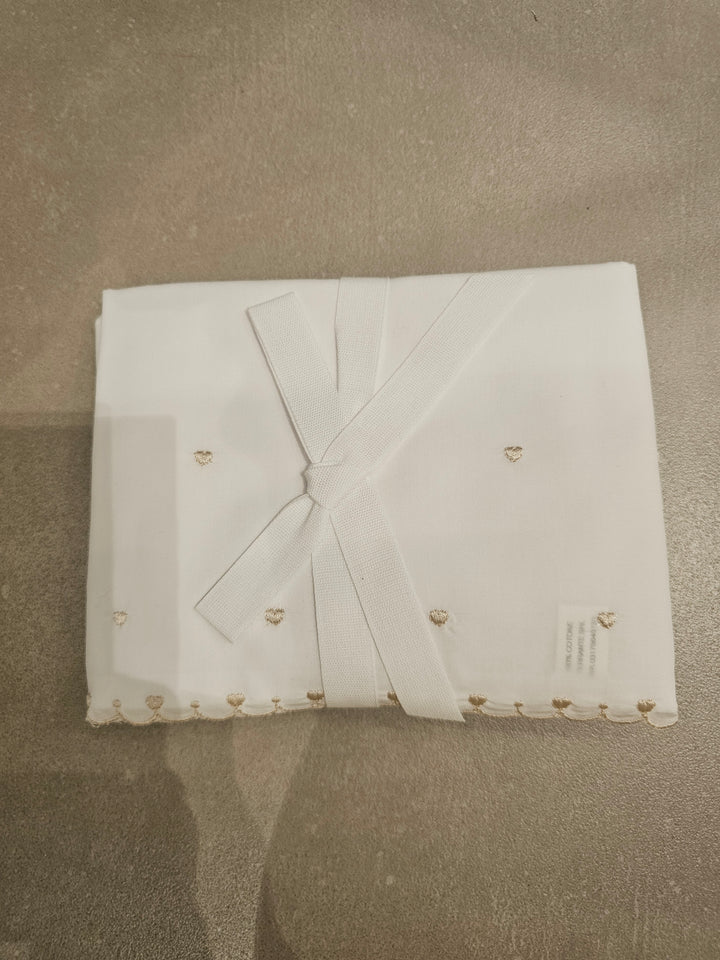 Lenzuolo culla-carrozzina smerlato ricamo cuori biscotto