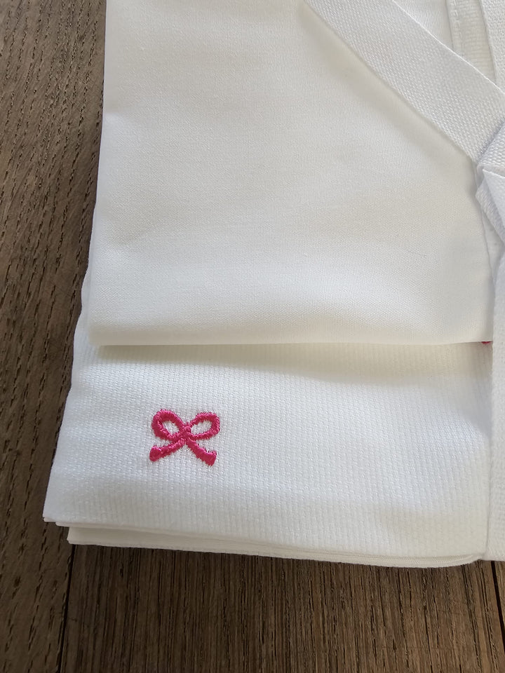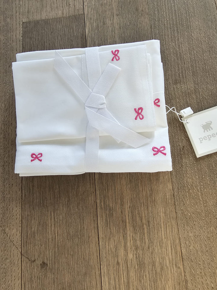 Lenzuolo culla carrozzina con ricamo fiocco fuxia
