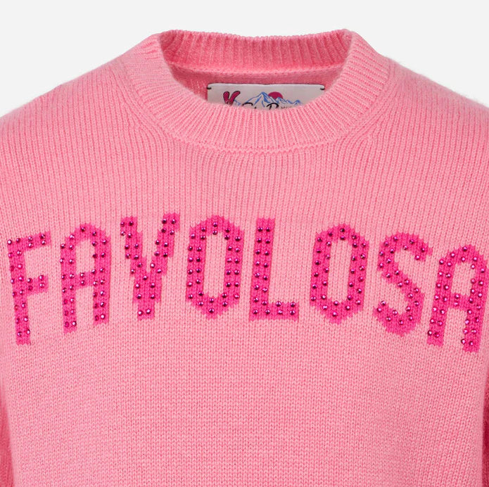 Maglione da bambina rosaGirocollo Scritta in strass Favolosa Fondo collo e polsini a costine Vestibilità regolare Fedele alle dimensioni Logo St. Barth sulla manica Composizione: 20% Cashmere 35% Lana 30% Viscosa 15%...