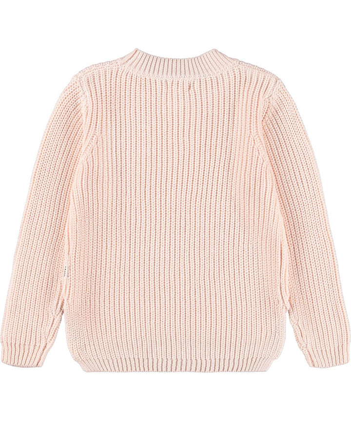 Maglione a maniche lunghe in maglia rosa, realizzato in morbido cotone biologico, con scollo rotondo. Il maglione ha una vestibilità ampia, è lavorato a coste con un motivo fine, ha una...