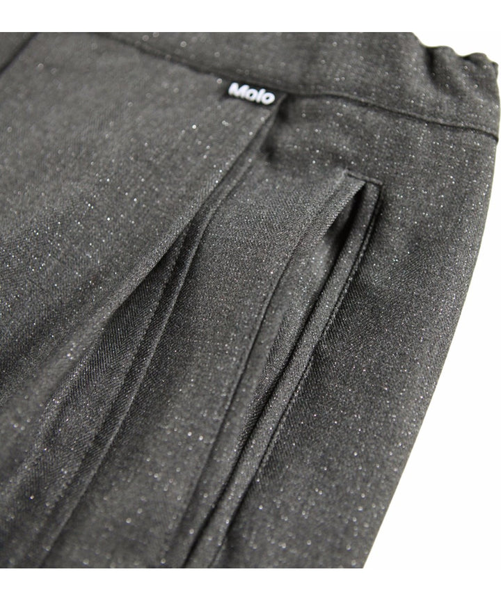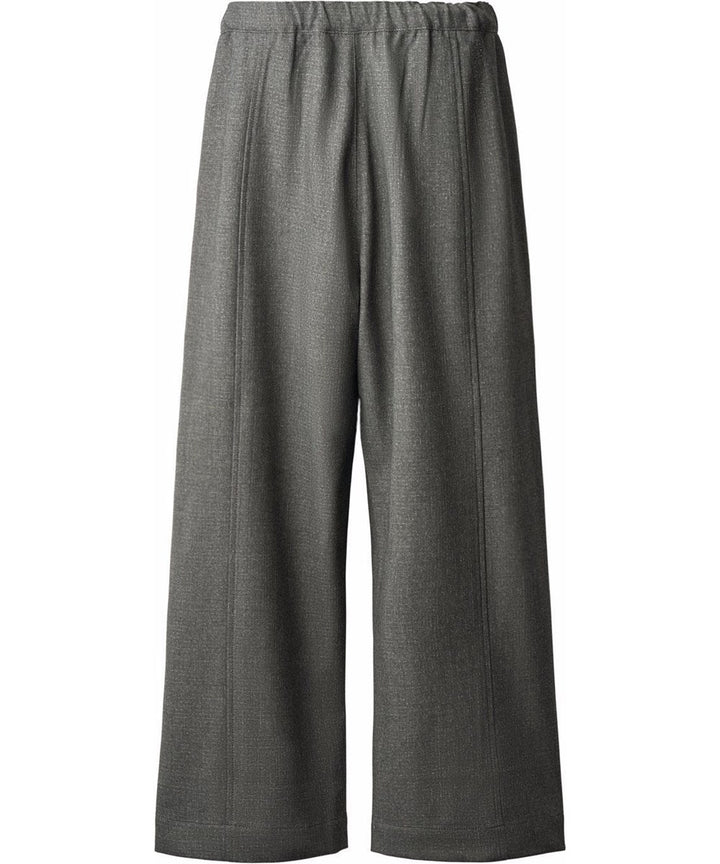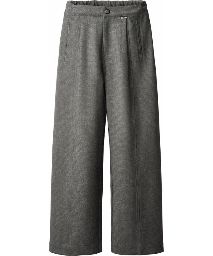 Pantaloni in flanella grigia con filo argentato dalla vestibilità morbida. I pantaloni sono leggermente a vita alta, con gambe larghe e pieghe sul davanti che creano una bella silhouette. Hanno due...