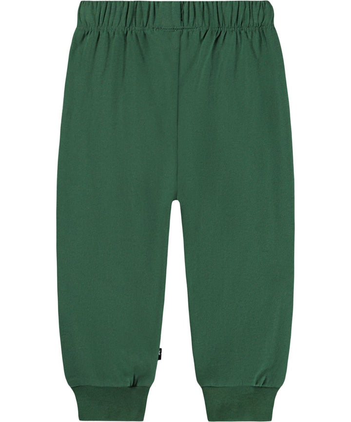 Morbidi pantaloni in cotone biologico per i più piccoli. I pantaloni sono verdi con delle morbide faccine bianche con diversi stati d'animo sulle ginocchia. I pantaloni hanno elastico e coulisse in...