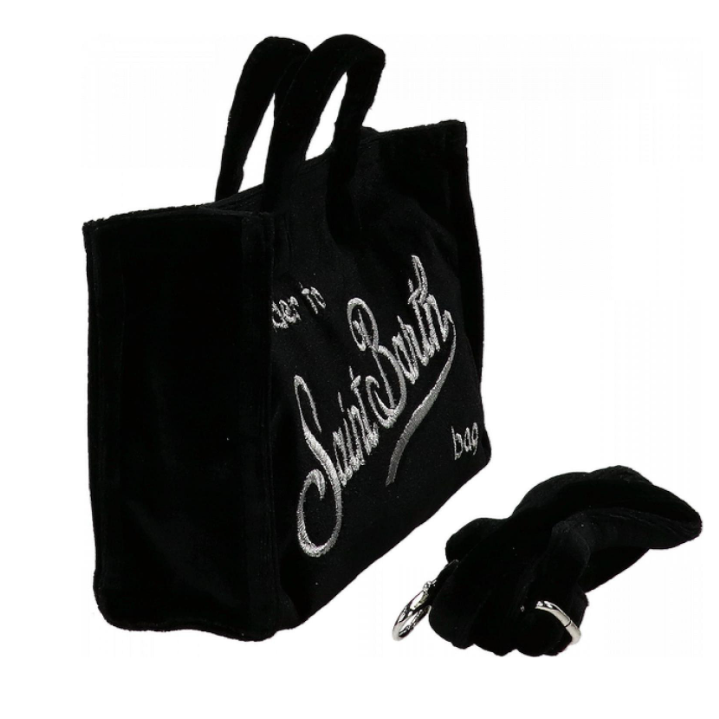 Phone bag velvet nero, scritta in argento, dimensioni: 15 x 10 x 3,5 cm
