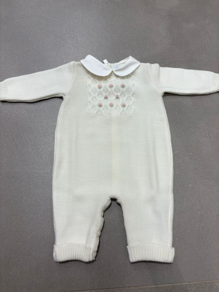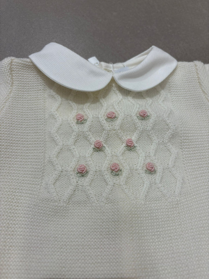 Tutina in lana fondo panna con roselline ricamate a vapore