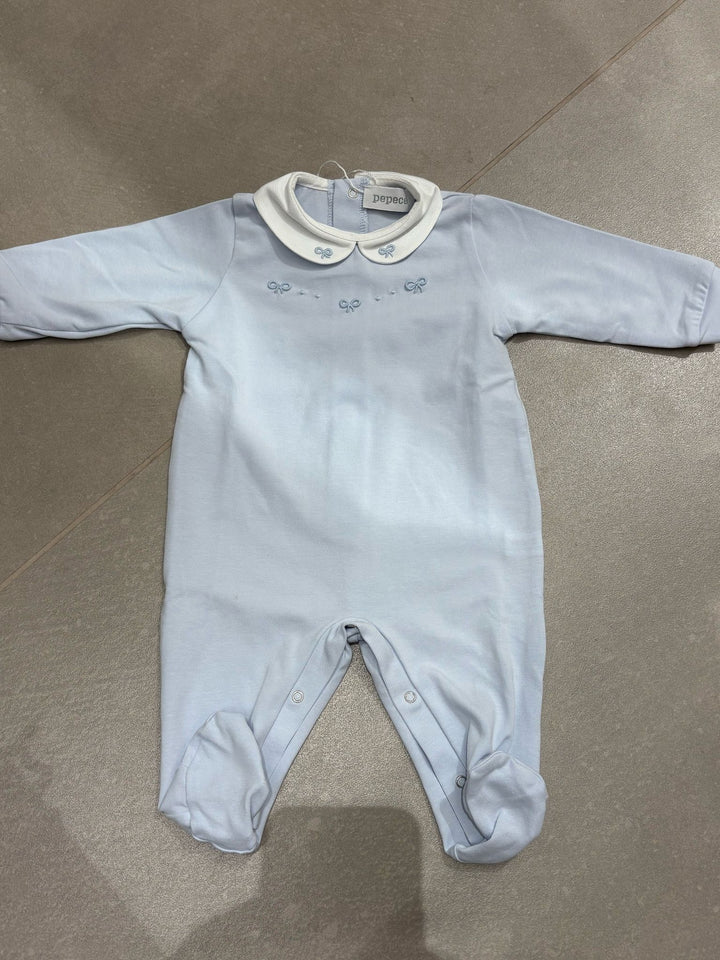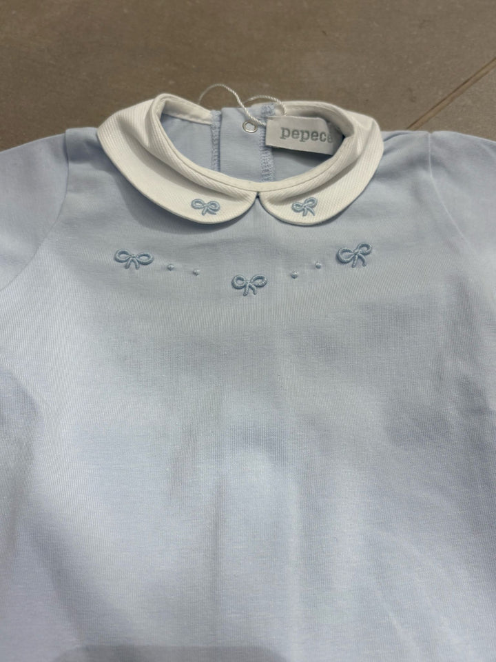 Tutina in maglina celeste con ricamo fiocchetto